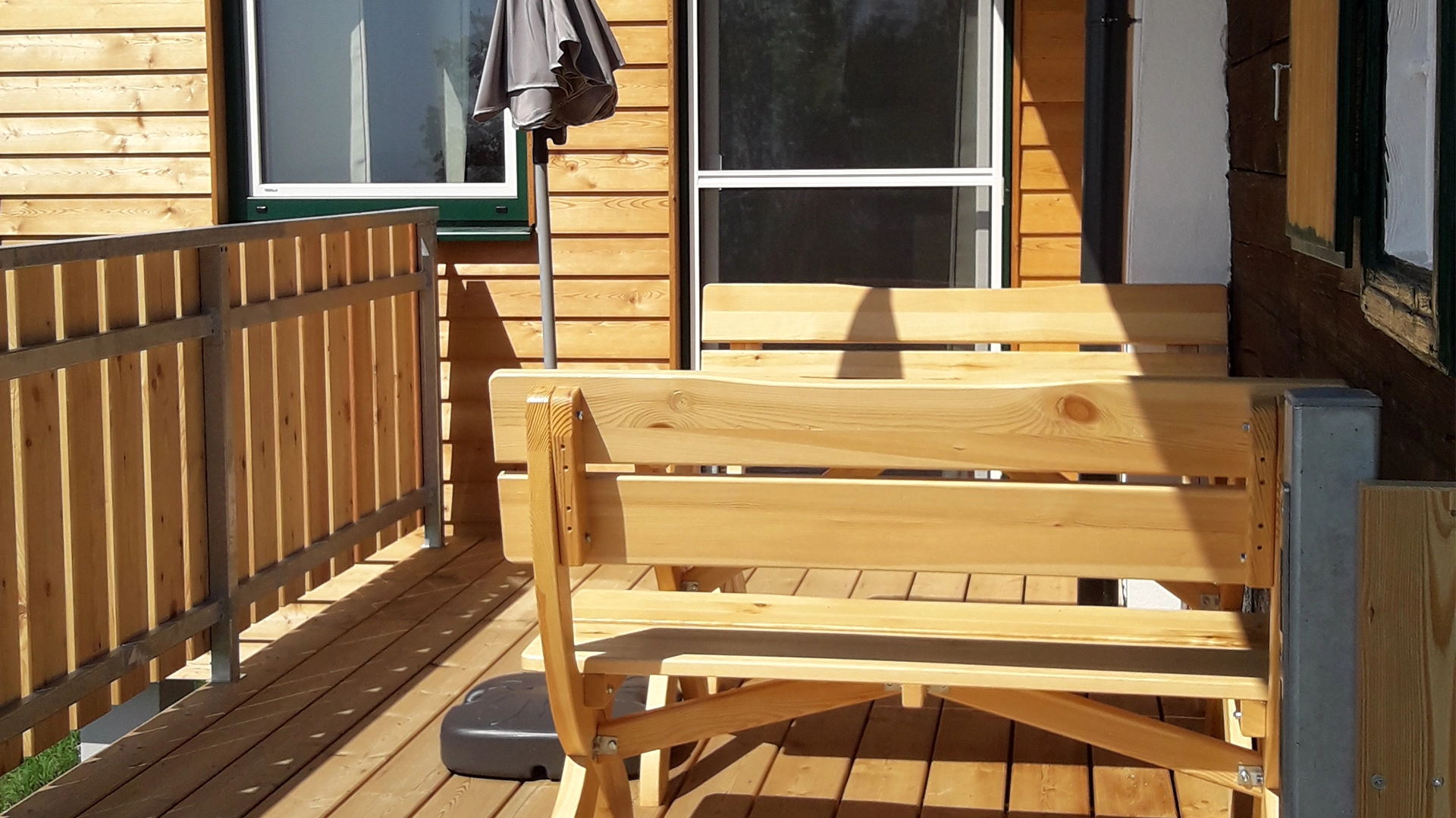 Beim Zubau wurde sehr viel Wert auf den nachhaltigen Rohstoff Holz gelegt der im eigenen Wald nachwächst. Der Holzriegelzubau versehen mit einer Lärchenfassade, die Holzterrasse sowie die Innenstiege aus Eschenholz die ein optischer Hingucker ist, garantieren eine heimelige Atmosphäre.